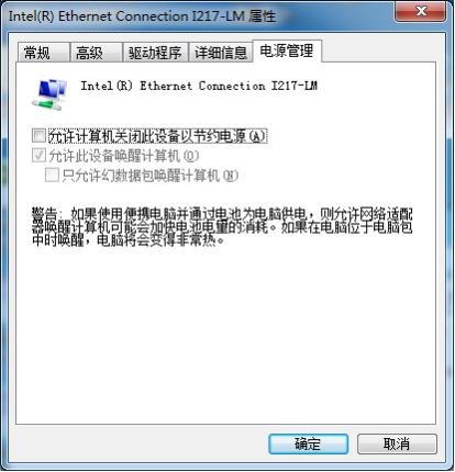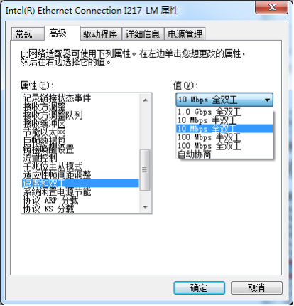 其次考虑网卡问题,关闭设备的节约电源以及修改速度与双工模式进行测试,故障没有排除。