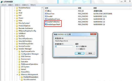 2、右键点击EnablePrefetcher和EnableSuperfetch