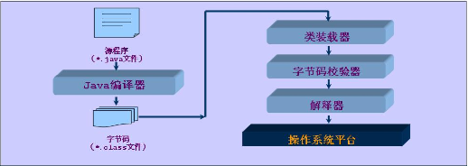 程序员编写出来的JAVA程序是以.java为后缀的文件形式保存在硬盘上的,如果要运行这些程序,则需要先把这些文件编译成字节码格式(.class文件),再拿到JVM中,让JVM解释成计算机认识的语言,再让计算机执行。